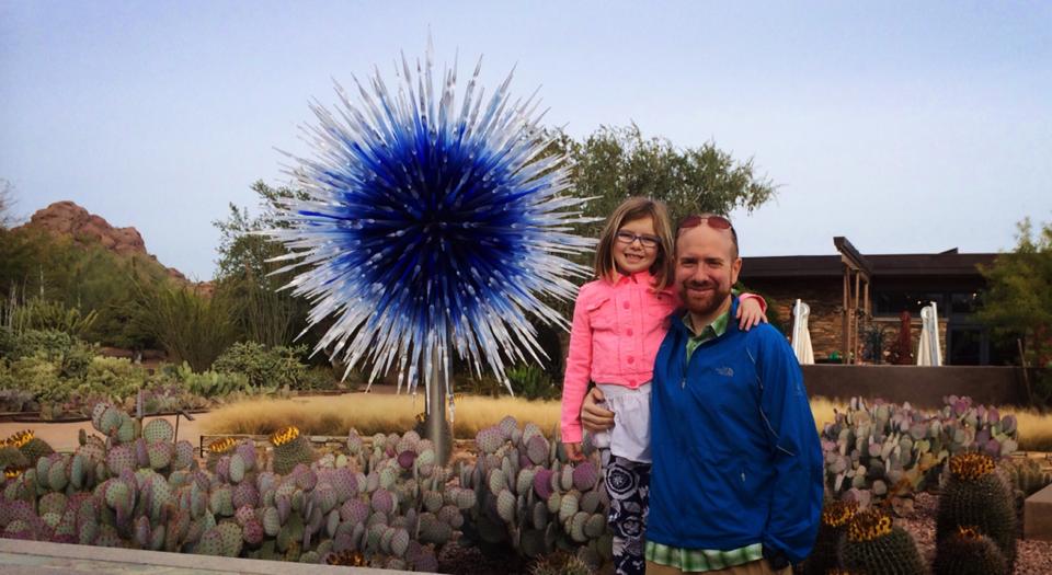 I traveled down to the Phoenix area a couple days before the race with my parents and daughter Grace to enjoy a couple extra days in shorts. We enjoyed the area and managed a great visit to the Desert Botanical Garden where they had a special Chihuly exhibit.