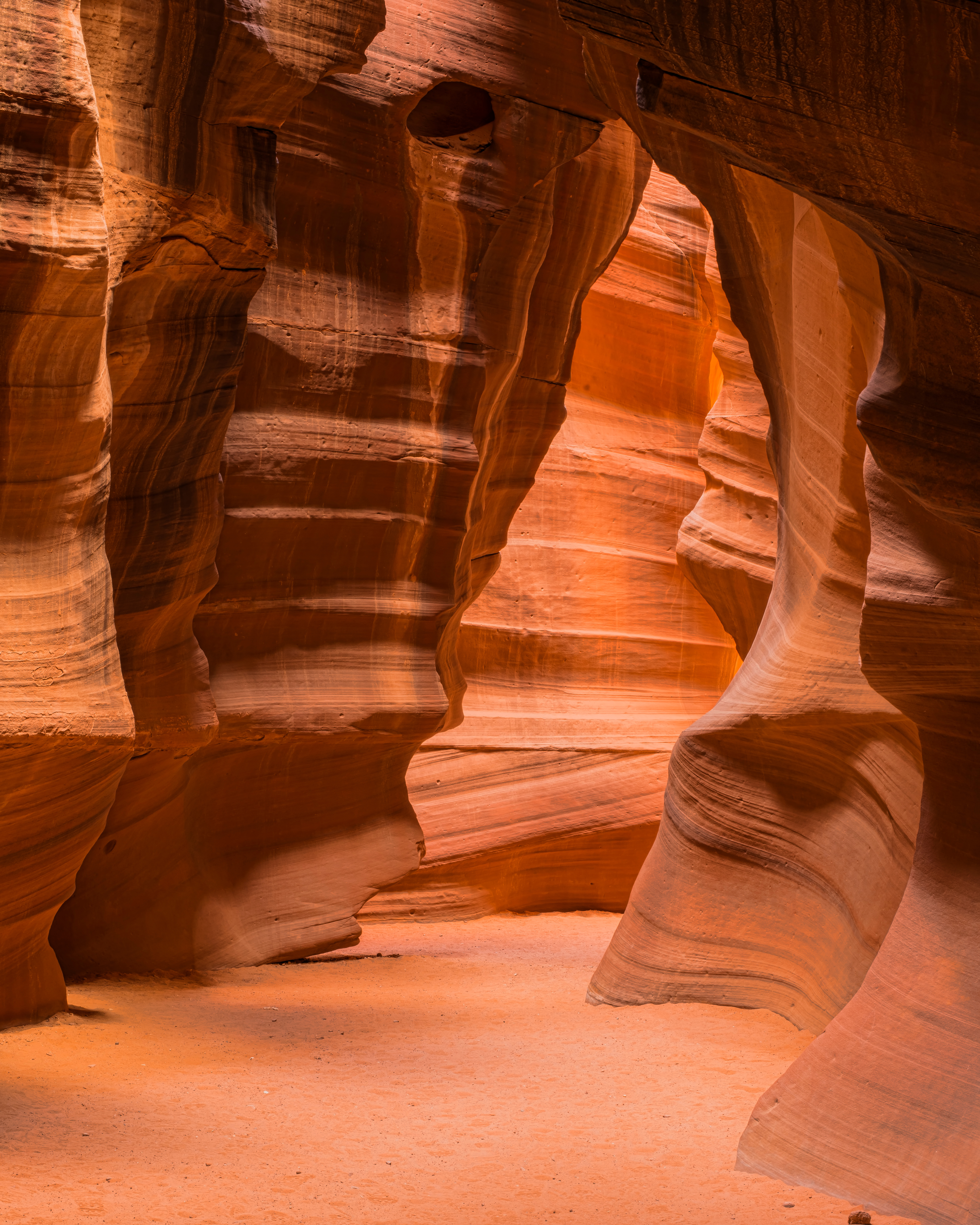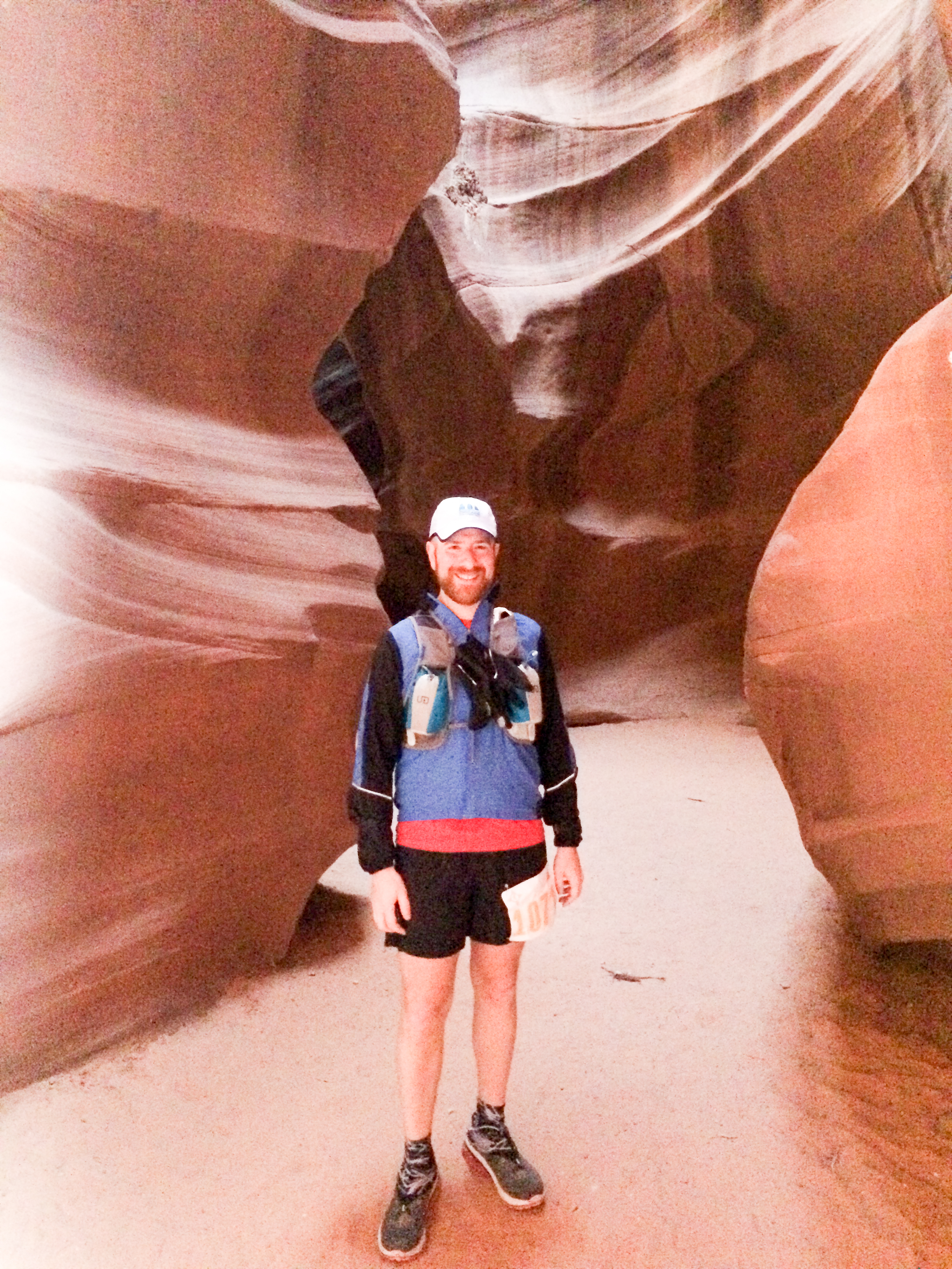 After passing through and up the first slot canyon, we had another 1/2 mile to go before reaching the first aid station at ‘Antelope Aid Station’. From Antelope, we had three miles of desert running to get to the Upper Antelope Canyon. Upper Antelope was gorgeous with 100-200 ft high canyon walls spaced no more than 5-10 ft apart.