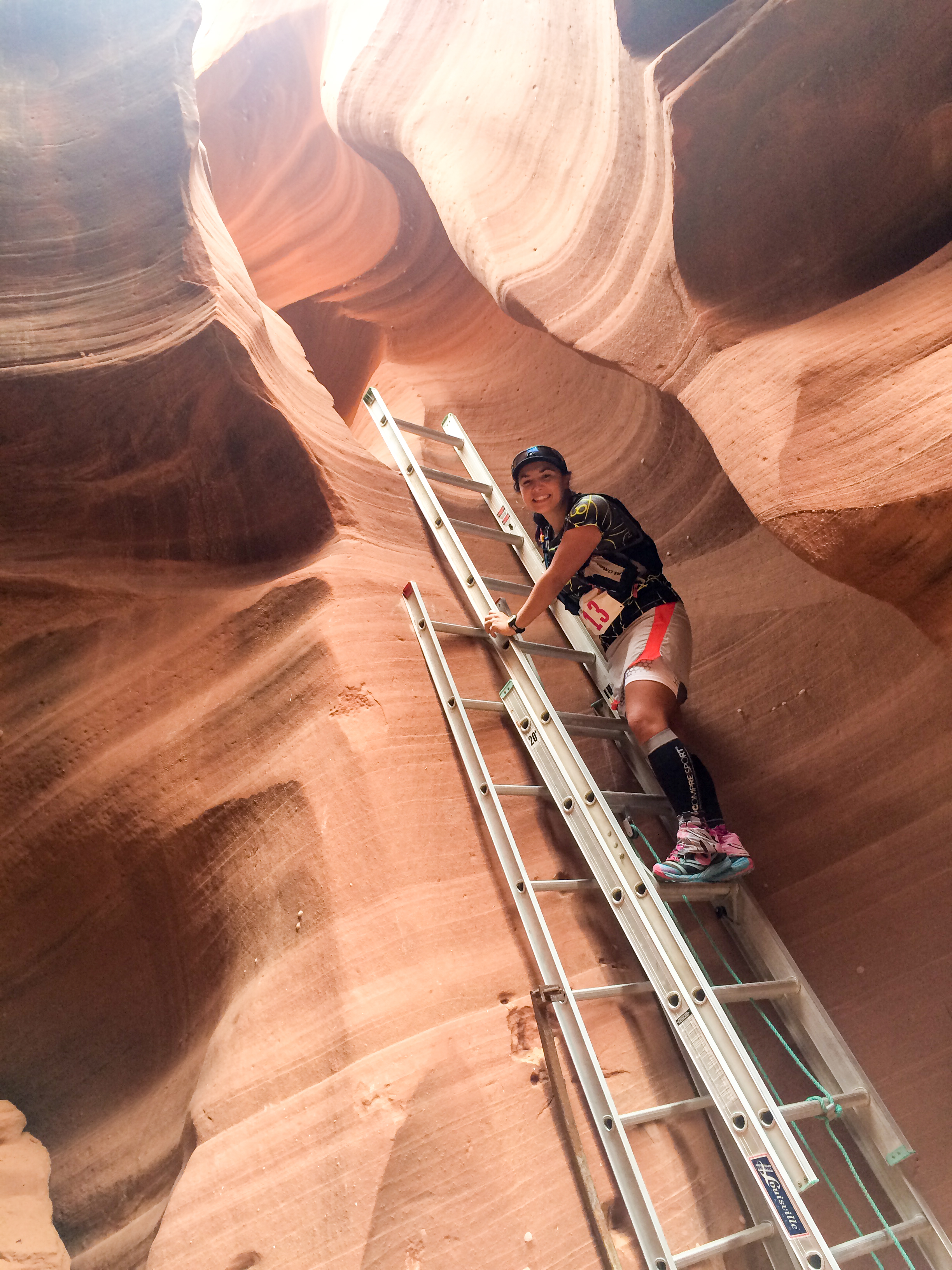 After running through Upper Antelope, we were tossed out onto another sandy section where we had to scale a sand dune before returning through another smaller canyon. This canyon had several sharp descents requiring a couple of ladders and even more scrambling. While the front-runners were likely racing, the majority of the runners took their time to photograph/video the canyons. There were at least 40 more miles remaining and plenty of time to make up for a couple of minutes of photography. Leaving the second slot canyon, we had approximately three more miles to return to the Antelope Aid station which was nearly 12 miles into the race.