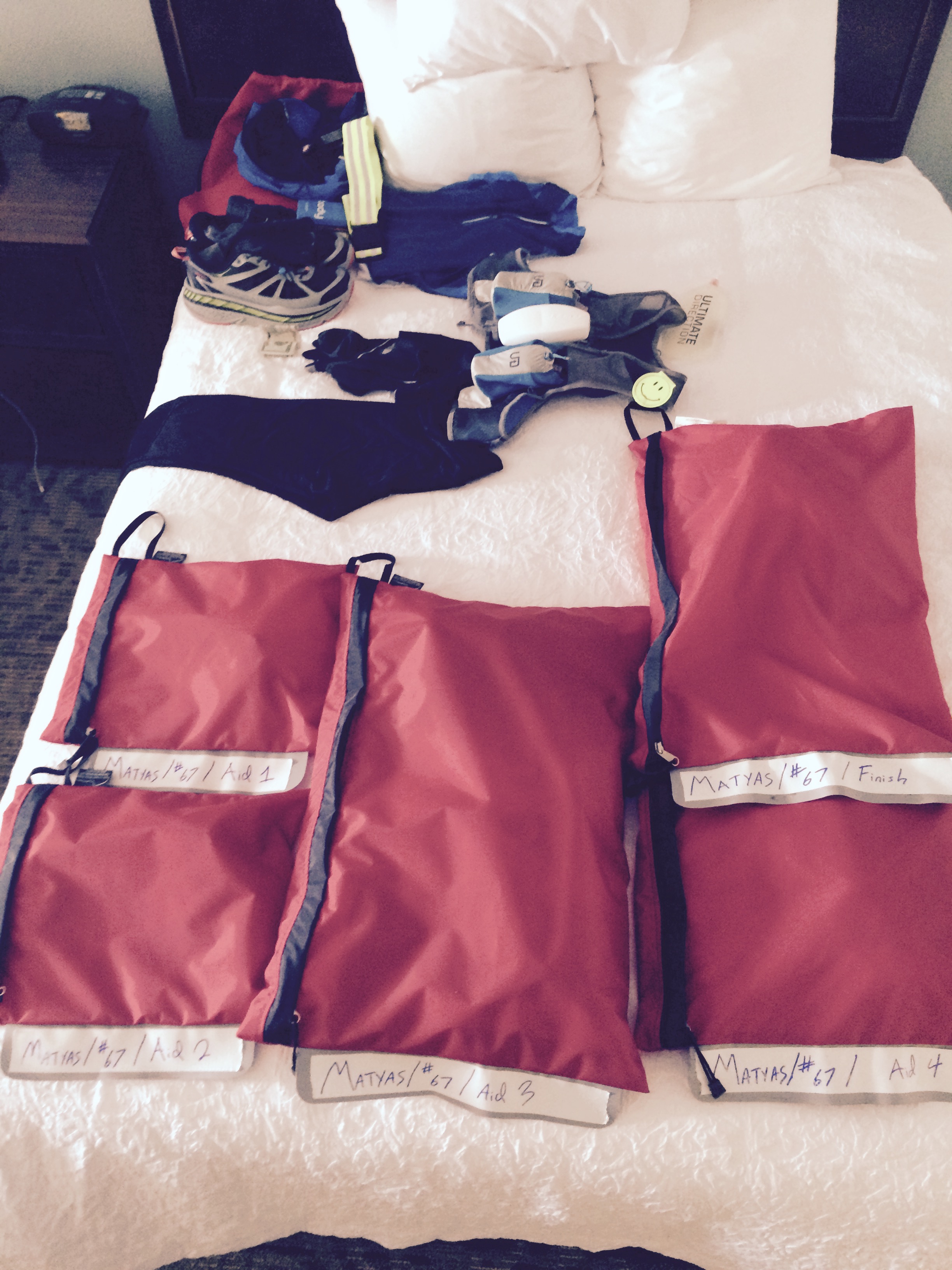 Bag 1 (21.4 miles / 9:10a) – Drop head lamp. Drop a layer if it was warm enough. Pick up 1,000 calories for the next 21 mile stretch. Pick up sunglasses.
