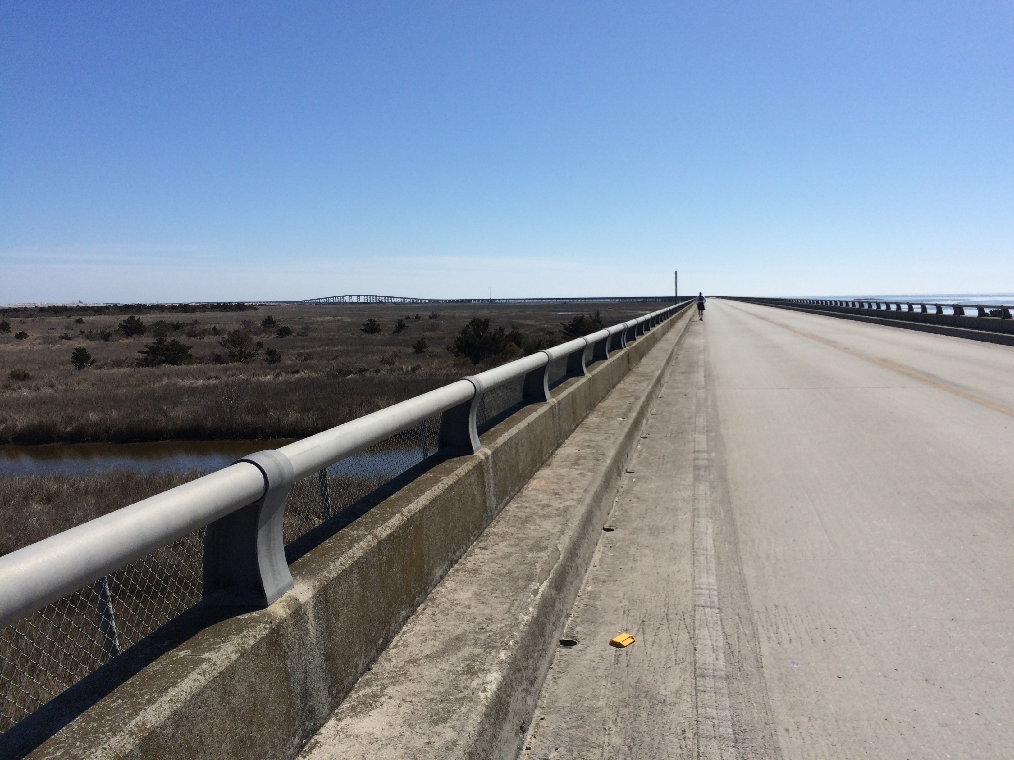 Leaving Aid 2, I could feel that my feet/legs were getting sore with all the pavement pounding. Nothing hurt but this was no soft trail – this was hard unforgiving pavement. I stuck with the 10/2 eventually adjusting down to a 9/2 and then 8/2 walk/run split trying to stay ahead of the fade curve. Towards mile 49, we were nearing Bonner Bridge which is the one ‘hill’ in the entire course.