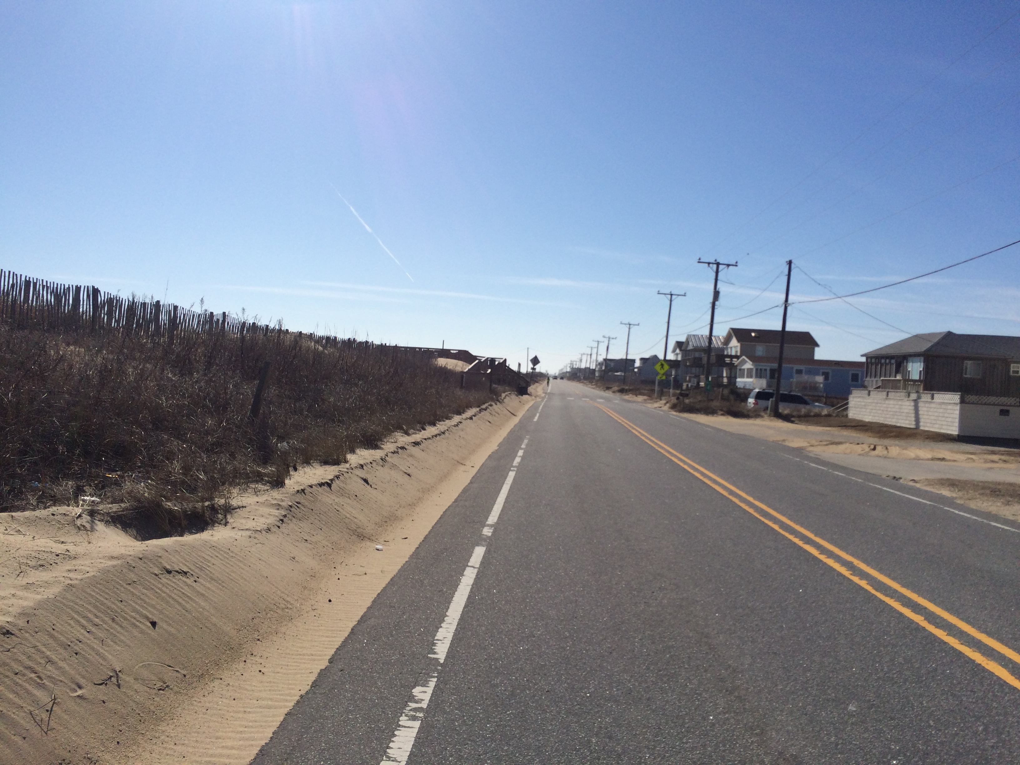 There was a 1-2 mile stretch leaving the Cape Hatteras lighthouse that was fairly wooded which helped to block the wind but once back on the main road, the wind was relentless and hit us right in the face.